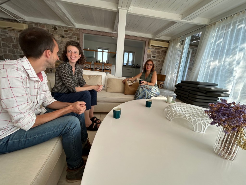 Recently, we had the pleasure of hosting independent curator, academician, and columnist Nazlı Pektaş at Gate 27 Ayvalık, alongside our current residents, Passepartout Duo. The duo, composed of pianist Nicoletta Favari and percussionist Christopher Salvito, shared their innovative artistic practice, which focuses on sound as a medium of expression, with Nazlı. It was fascinating to observe the dialogue between them, exploring how sound art mirrors other art forms like painting, where sounds, rhythms, and notes replace brush and paint.