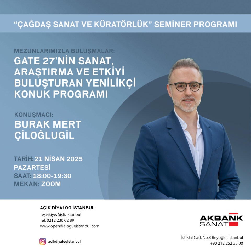 I was one of the participants of the first edition of of the Contemporary Art and Curating program co-run by Open Dialogue Istanbul and Akbank Sanat. Now as an Alumni, I will present Gate 27 and its activities through an impact-focused lens. You can join us On Apr 21, Monday between 6-7.30 PM on Zoom. The seminar will be in Turkish.