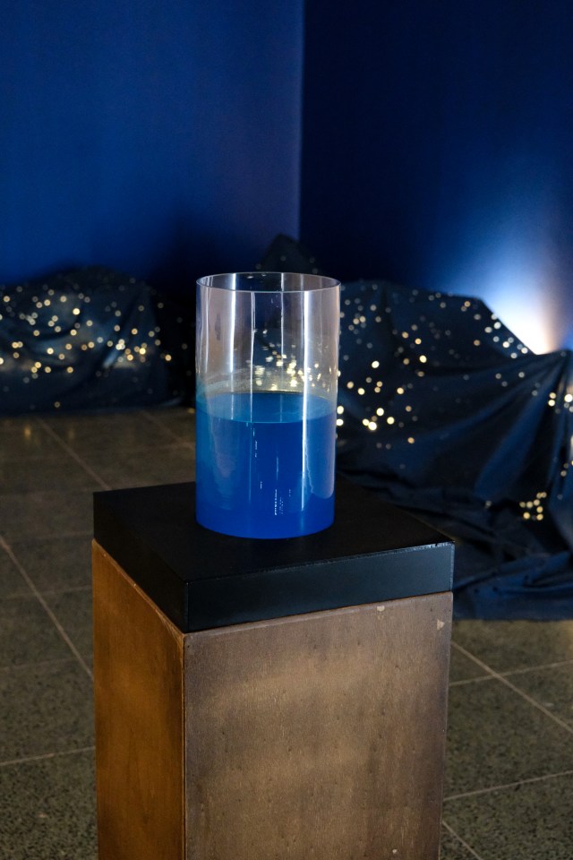 DÖ: Delal buried different things in this exhibition, but mostly the light. However, we do not prefer to name the source of light. What is buried is up for discussion. We have no intention of imposing a strict meaning, despite some solid meanings being hidden in small details. Visitors can trace the hints, or they might carve their own way. We wanted this exhibition to have a meaning, a concept, but we also avoided lecturing the visitors. The visitors should be able to relate to the works with their senses, emotions, and instincts, without “understanding” the meaning. We never wanted this exhibition to be didactic. The guide in the act of burial can be this question: how does the light react to being buried? Because the light is never gone in the exhibition. In the paintings, you can see the salt “winking” as visitors move their gaze among the paintings. Stars in the paintings do not go fully dark. In the installations, light is still visible despite being buried. The reactions of the light might provide us with patterns. I think the visitors can follow the patterns and create new meanings that are not strictly what we think. The process of creating new meanings follows a simple question: What is buried? Such a question automatically creates a hierarchy of beings: ones that bury and ones that are buried. For us, this hierarchy was a hierarchy of values. What/who is valuable, what/who is not? After all, what/who is not valuable are the ones that are buried. Visitors can fill in the blanks as they wish at the exhibition. So when you ask, “What is the artist burying in these works?”, your answer is more important than mine.